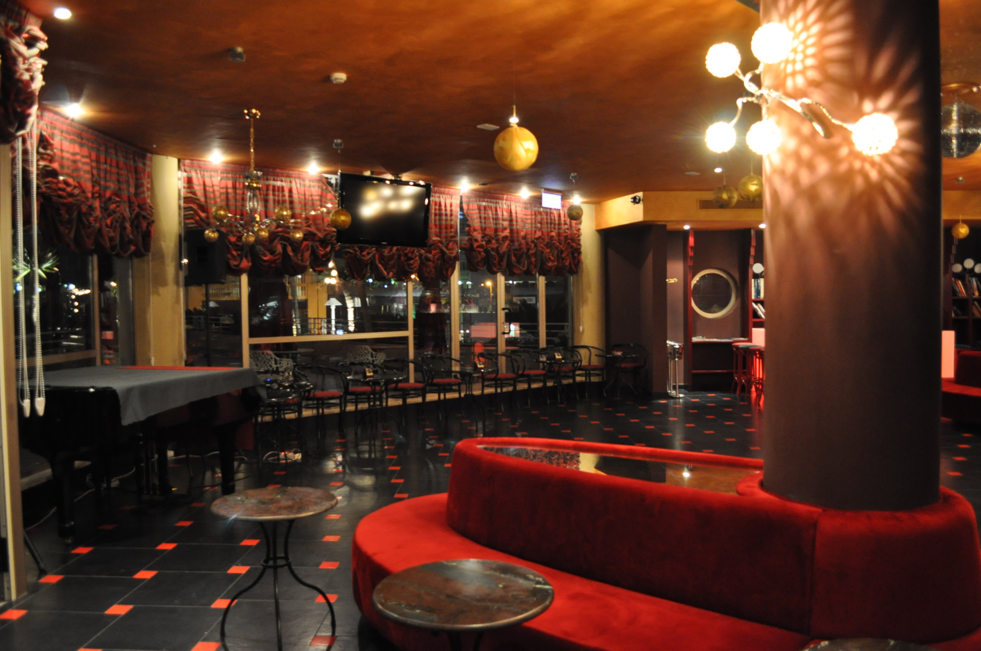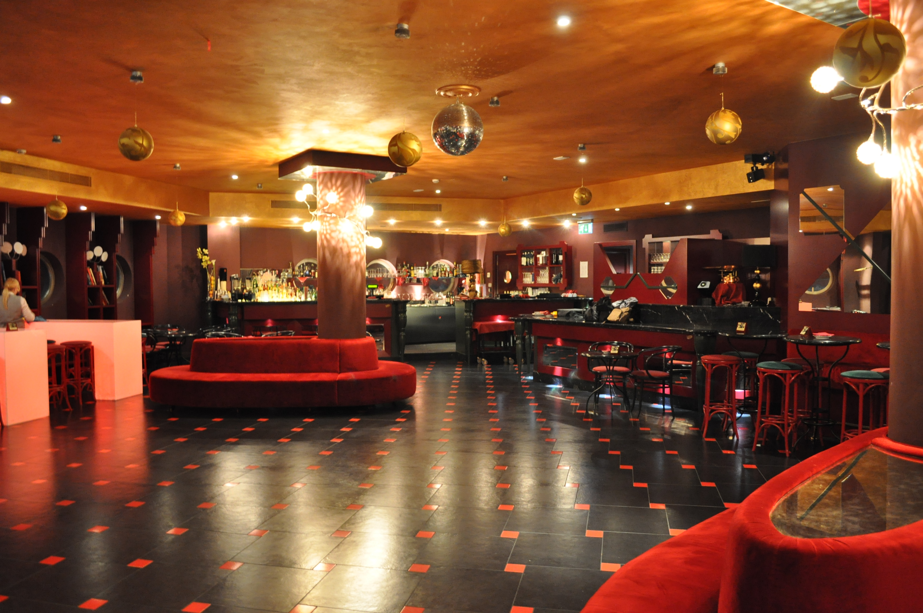 La cornice del Café Gaudì è perfetta per il tango: il rosso e il nero che si alternano con armonia negli arredi, bar fornitissimo, tavoli, sedie e divanetti.