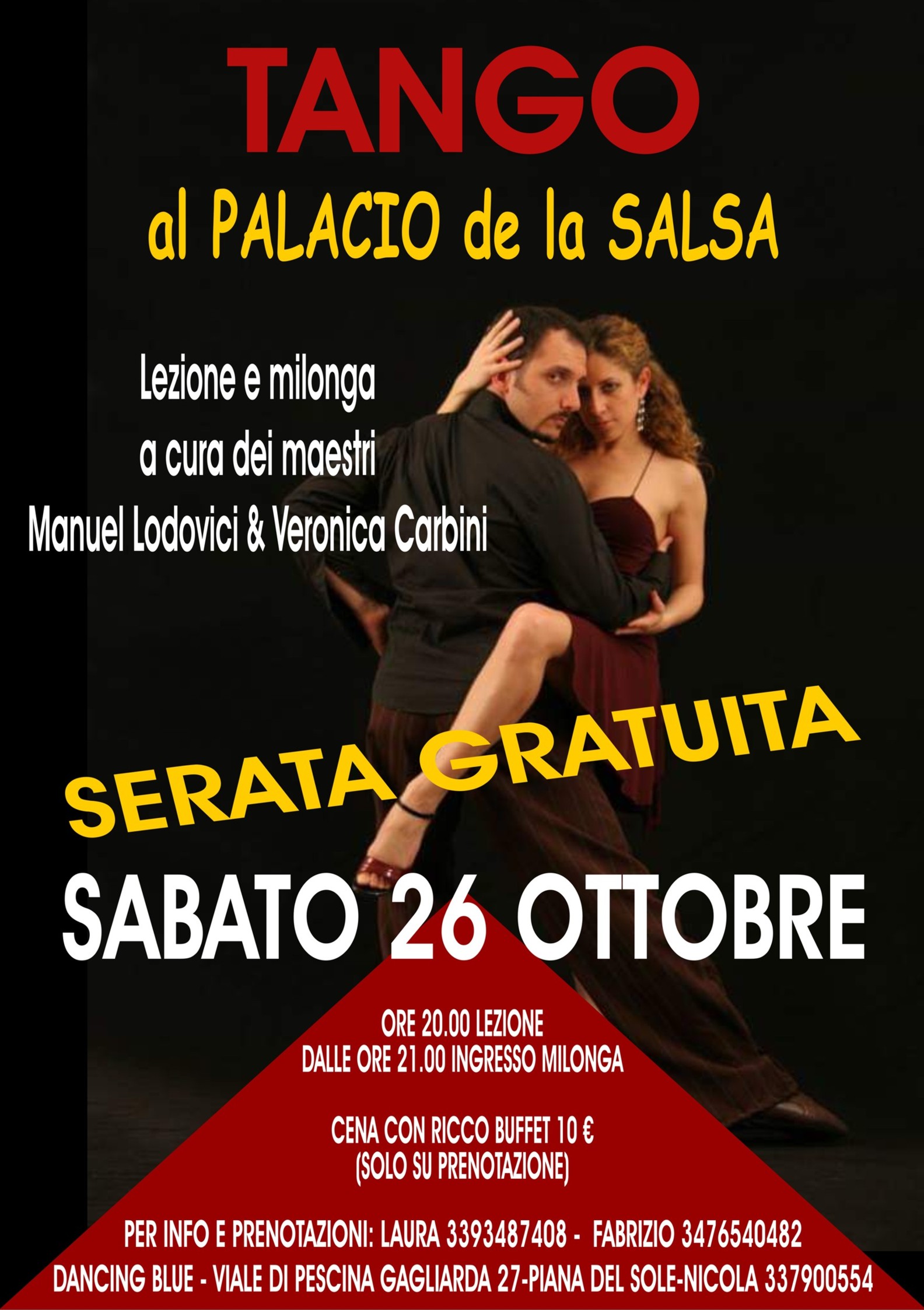 Tango argentino (Sala 2) con lezione ore 20,00 e milonga a seguire